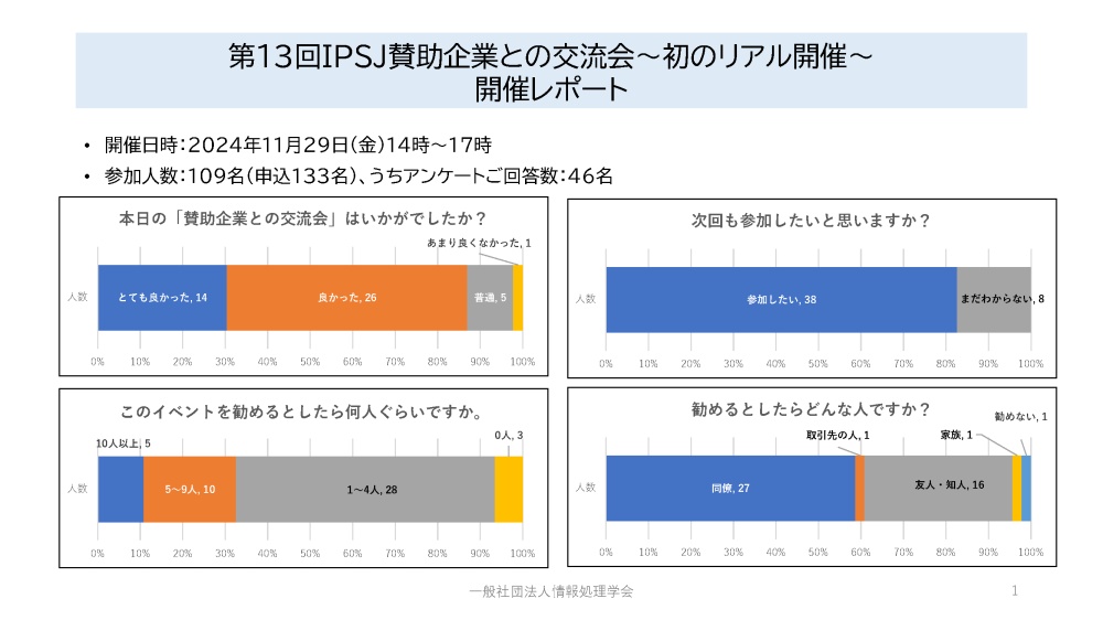 産業界の皆様と会員との橋渡しができるイベントを目指しています。