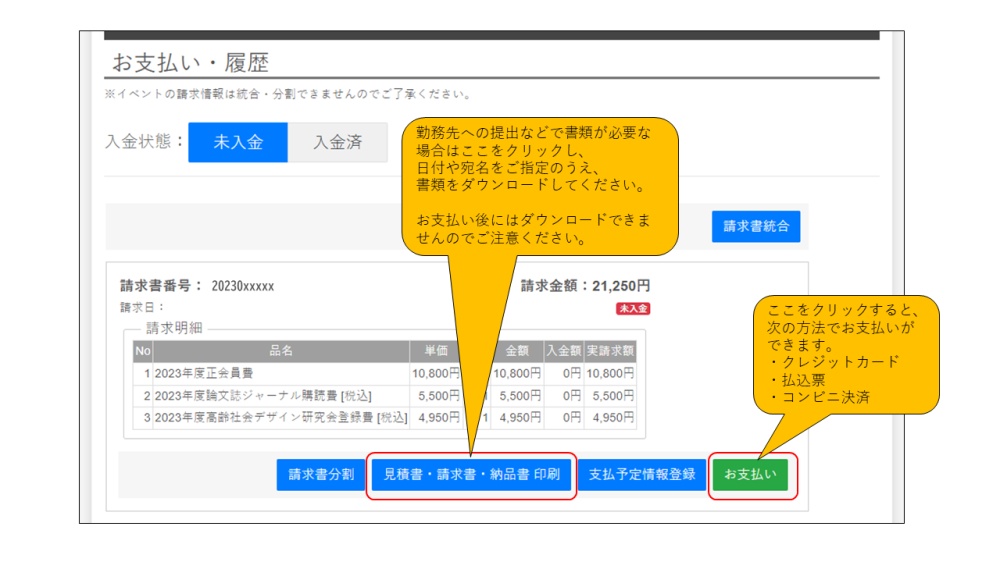 次年度会費等の請求明細は2023年12月1日以降にマイページに掲載予定です。